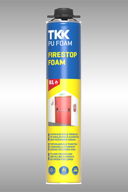 TKK Tekapur Firestop is a one-component modified polyurethane foam with a pistol consistency that is non-flammable and provides good sound and thermal insulation. It adheres well to most building materials such as wood, concrete, porous concrete, brick, metal and aluminium, but does not adhere to polyethylene, silicone and PTFE. It hardens when exposed to moisture in air.